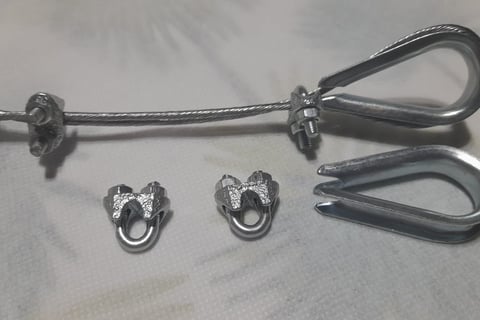 Tensor de acero de 2 mm , con guarda cabo y 2 prensa linga